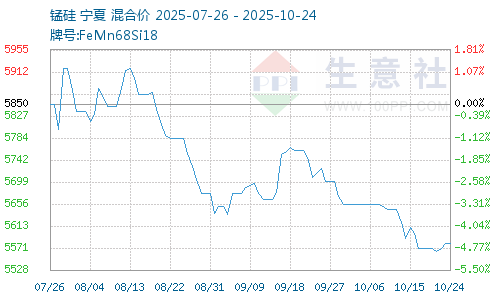 本周硅锰市场盘整运行,本月钢招环比下跌,市场情绪较弱,南方工厂大多以交付前期订单为主,新接订单情况较少,北方个别工厂表示利润较差,工厂多数封盘不报,成交以基差贸易为主,多数在交付订单。根据生意社商品行情分析系统的数据显示,本周末硅锰在宁夏地区(规格为FeMN68Si18)的市场报价5500-5600元/吨左右,市场均价5580.00元/吨,与周初相比稍上涨0.18%。