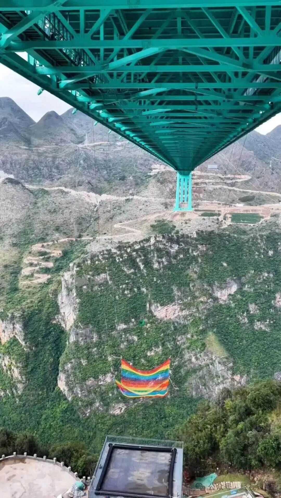 此前,花江峡谷大桥景区工作人员回应记者称,安全网的防护性能符合国家标准,除了主防护网外,底部设有气垫作为备用防护。