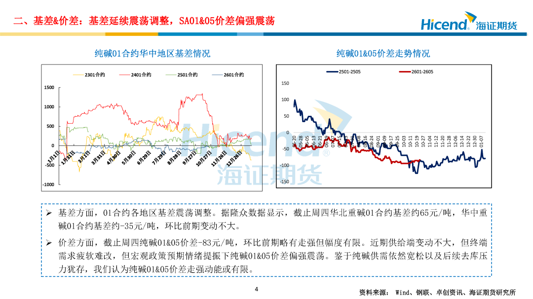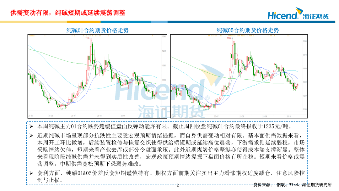 套利方面,纯碱01&05价差反套短期谨慎持有。期权方面前期关注卖出主力看涨期权适度减仓,注意风险控制与止损。