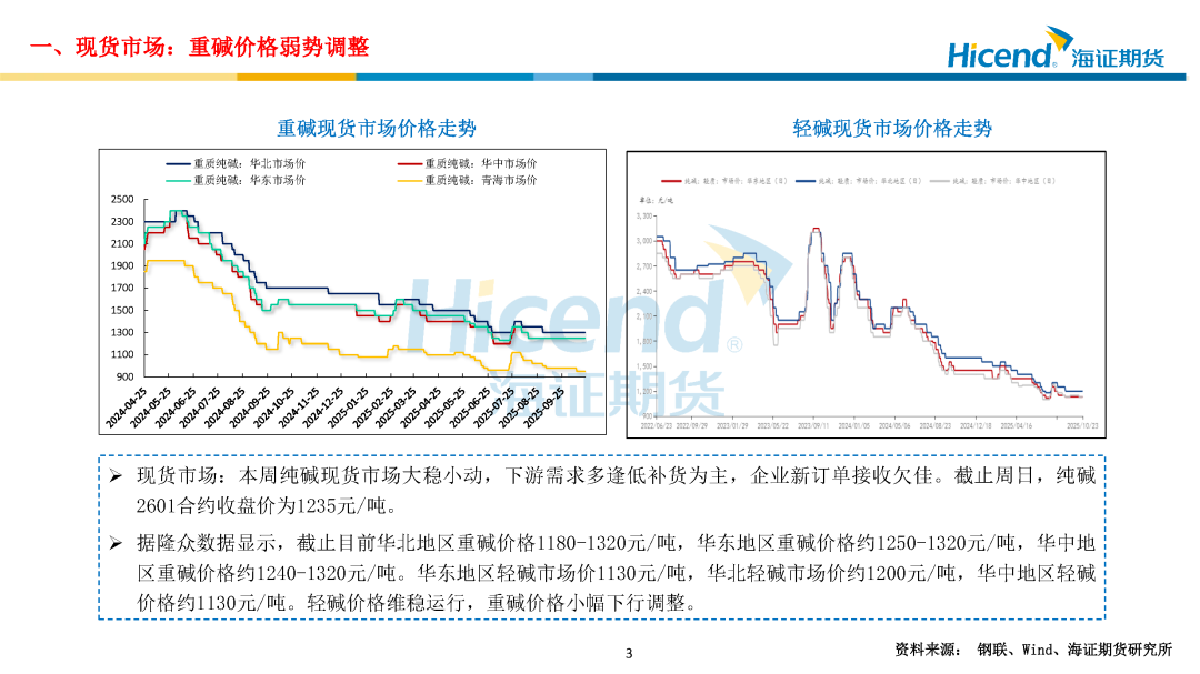 本周纯碱主力01合约跌势趋缓但盘面反弹动能亦有限。截止周四收盘纯碱01合约最终报收于1235元/吨。
