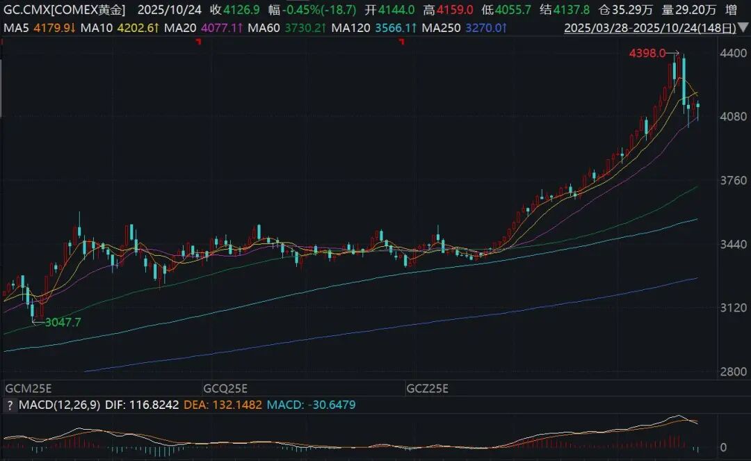 所以,黄金的市场化价格,可以从1968年的35美元算起。在我写下这篇文章的2025年10月24日,国际黄金在市场化57年以后,收盘价格是4126美元/盎司。