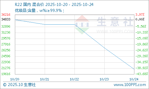 近期R22行情大跌,主因环保政策加速淘汰,生产配额缩减,下游转向替代品,加之市场处于淡季,整体需求疲软。此外,企业竞争加剧,为清理库存恐慌性抛售使得市场上供应量大增,进一步压低价格。短期R22行情弱势走跌。
