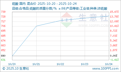 近期硫酸行情大涨。主要是因为原料硫磺市场价格大幅攀升,为硫酸价格上涨提供了坚实的成本支撑。同时,国内多地酸厂装置进入检修期,市场供应量明显收缩。预计短期硫酸行情强势运行。