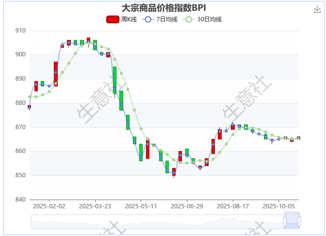 10月24日大宗商品价格指数BPI为868点,较周初上升了335.37%,2.24%。