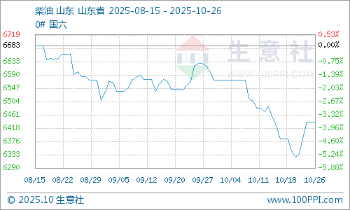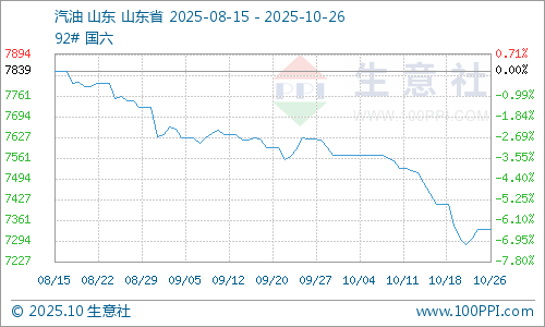 进入本轮计价周期,国际油价行情先跌后涨,截止24日,美国WTI原油期货12月合约结算价报61.50美元/桶,布伦特原油期货12月合约结算价报65.94美元/桶。本轮调价周期内,原油价格行情先跌后涨,周期初期欧佩克+已经启动165万桶/日的新一轮增产,市场依然担忧长线的供应过剩风险,巴以局势缓和,加之美国需求减弱,美国关税问题拖累全球经济和需求预期,导致国际油价行情急速下滑;但是后期随着欧美对部分产油国制裁政策延续,加之美国关税及贸易争端带来的利空压力忧虑有所减弱,原油市场走势上涨。截止27日,第十个工作日原油品种变化率为-6.19%,对应国内油价每吨汽油下调265元,每吨柴油下调255元,折合每升89#0.19元、92#0.20元、95#0.21元、0#0.22元。