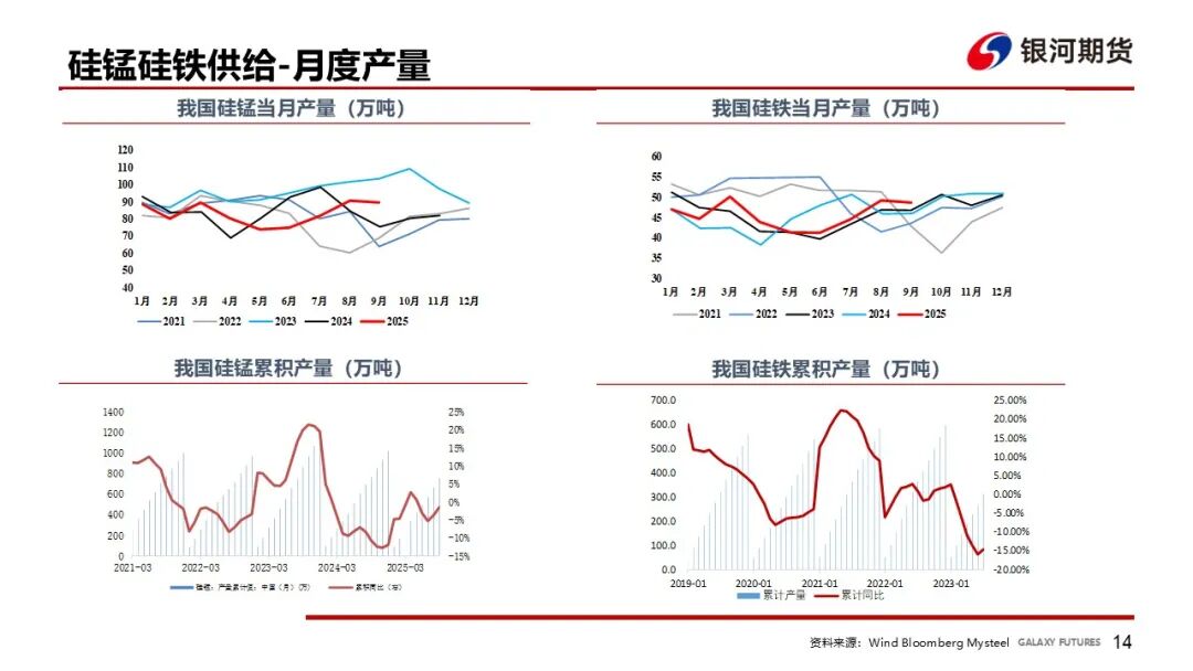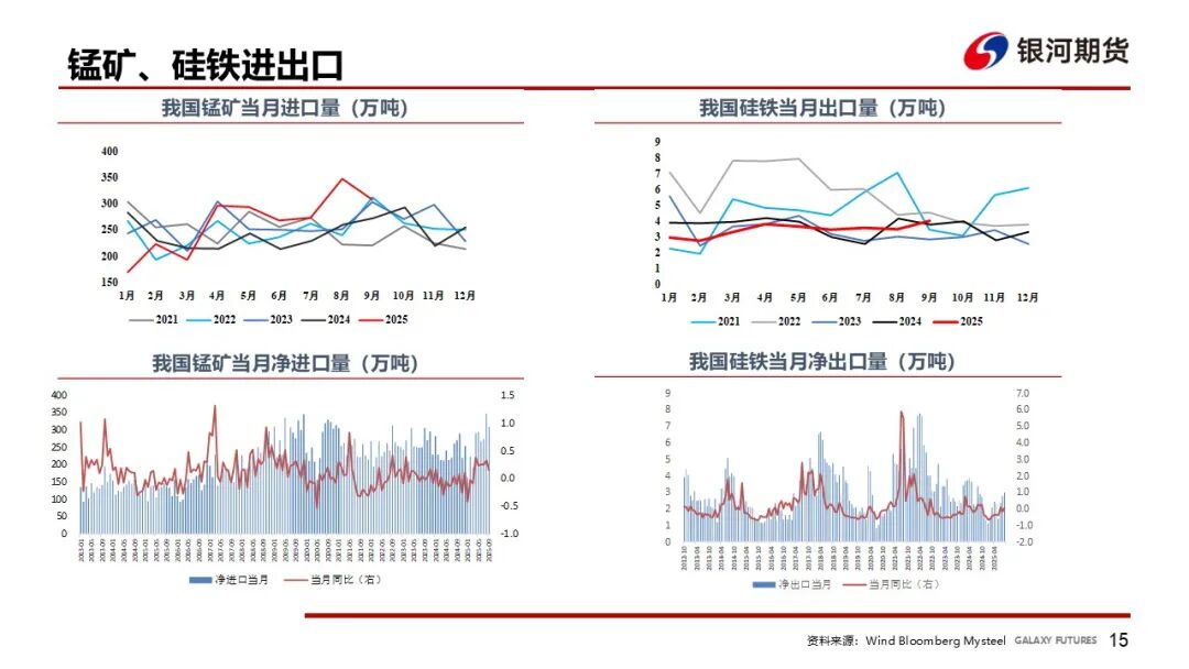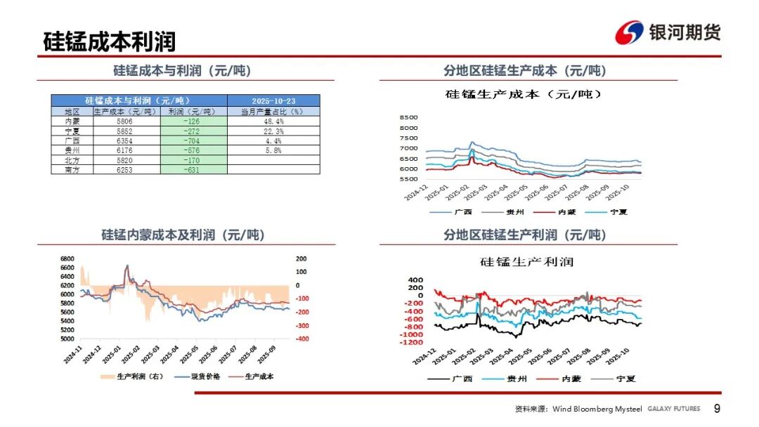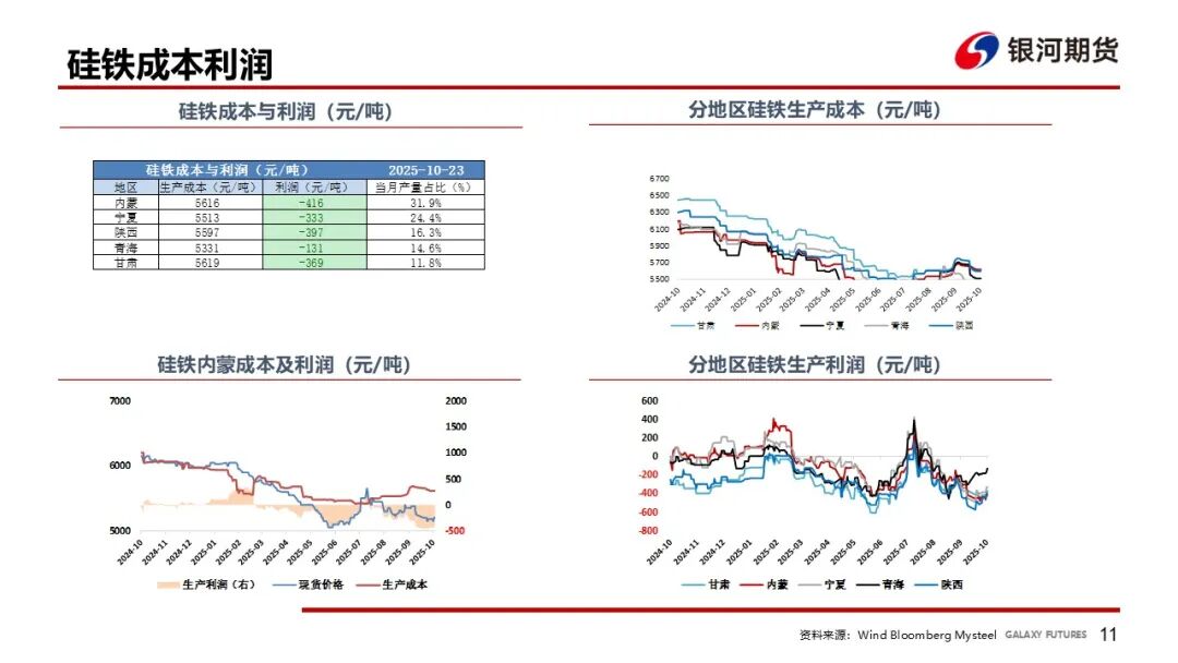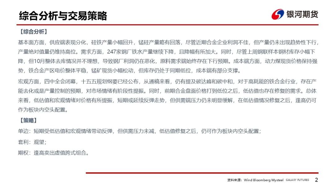 硅铁价格回到成本7500附近后,厂家停止继续复产,本周开工环比-2%,在整体库存中性的前提下,09、10合约成本支撑较强,远期看供应增长空间大于需求,01偏弱;