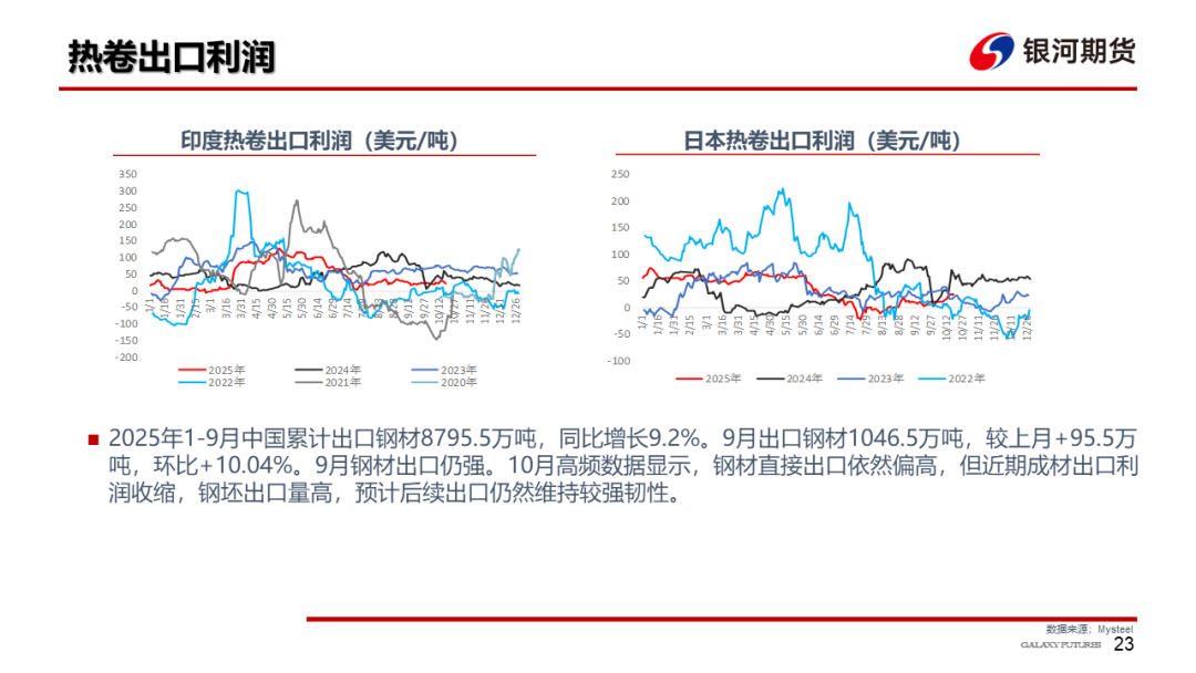 2月钢材现货市场价格震荡偏强,热卷涨幅相对较大,截止上周五,华东上海螺纹4260元,环比I月末上涨30元/吨: 热卷方面,上海热卷4300元,环比环比1月末上涨30元/吨。 2月24日,MS 五大品种钢材整体产量增15.55万吨,五大品种库存广库环比降29.25万吨,社库增1.7万吨。表观需求963.06万吨(农历同比 3.21%),环比增80.46万吨。长流程现货端,截至2月24日,螺纹现金含税利润低位运行,华东螺纹长流程现金含税成本4272元,利润-12元左右,热卷长流程现金含税利润-72元左右。电炉端,利润有所恢复,华东平电电炉成本(理计) 在41...