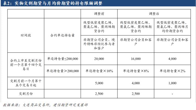 持仓限额方面,三个化工品月均价期货合约与实物交割期货合约适用各自的限仓数额。非期货公司会员和客户持仓限额见下表,交割月份个人客户持仓限额为0。