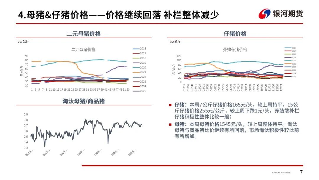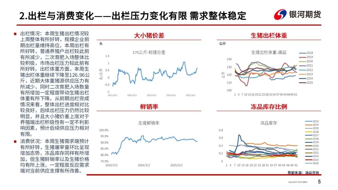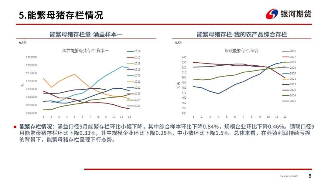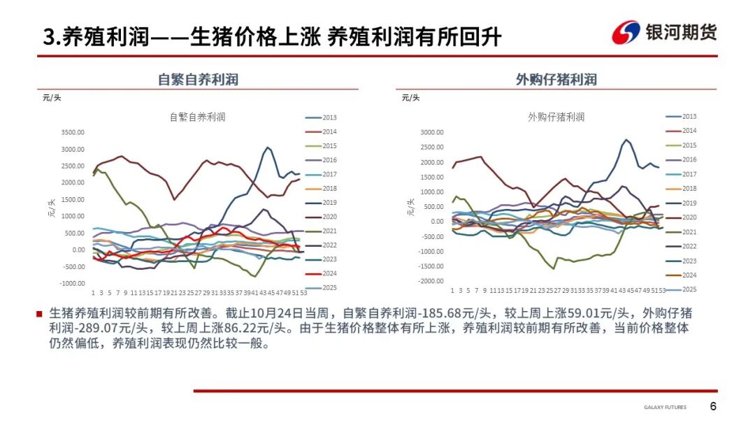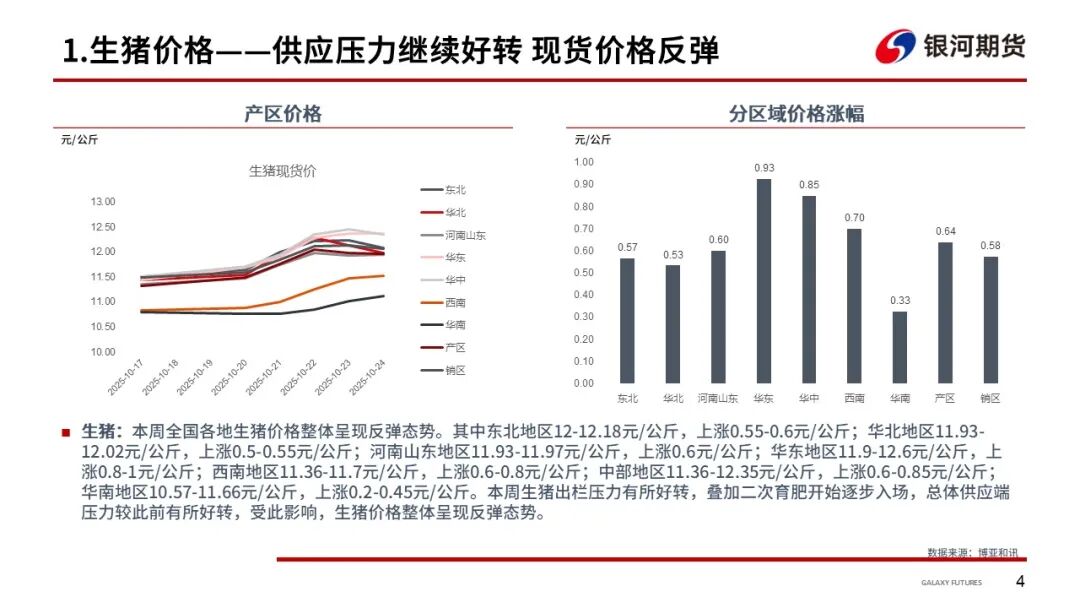 本周生猪价格整体呈现小幅回落,主要受到政策性调控以及大猪出栏增加带来的季节性回落影响。但市场供应并未表现出明显宽松的迹象,因而即使高价猪肉对消费产生抑制,猪肉市场供需结构也并未出现实质性反转,猪价下跌空间暂看比较有限。进入11月后,从大企业生猪出栏计划来看,出栏环比将有季节性提高,但11月同样是腌腊备货旺季,加之天气在逐步转凉,需求通常也会有季节性提高,并且在整体供应方面没有出现太大变化的情况下,四季度猪肉市场仍以偏紧特征为主。