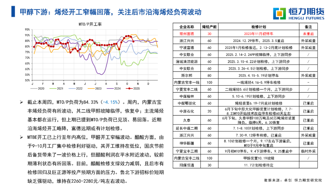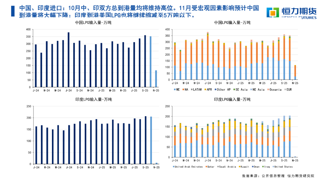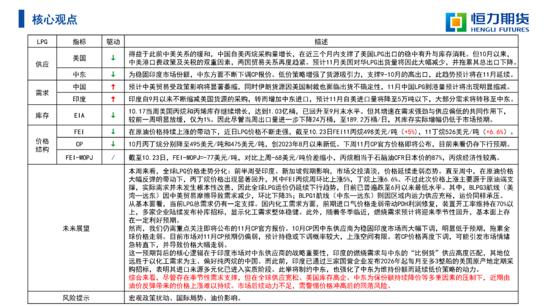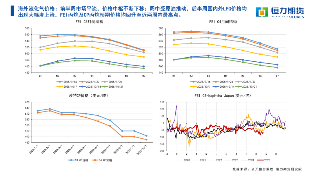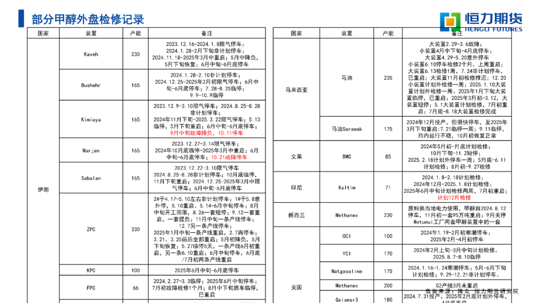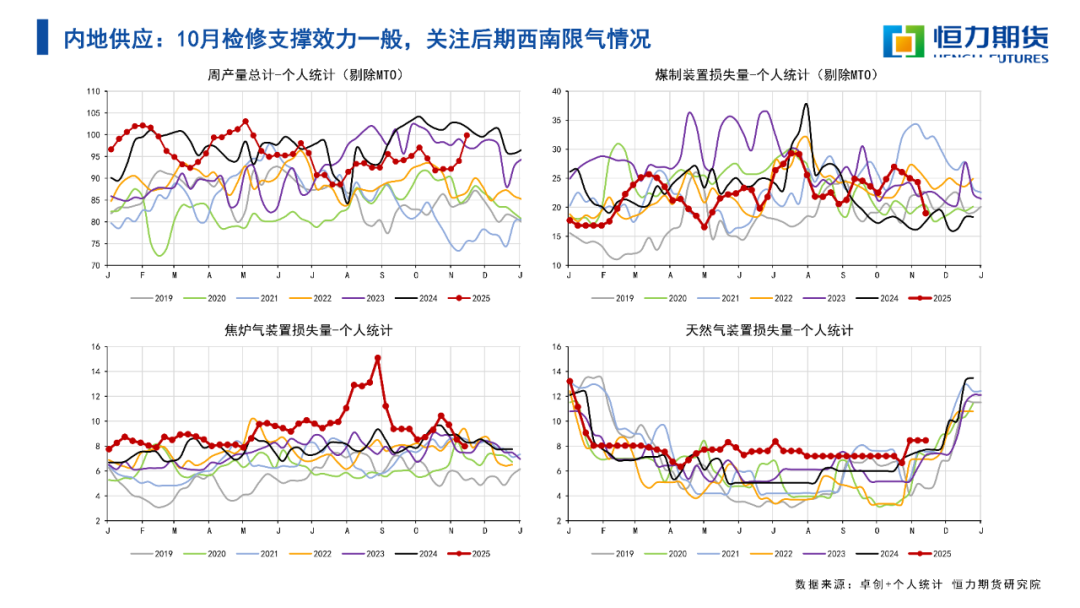 2、内地方面,局部价格在周内有反弹情况,西北有烯烃间歇性外采支撑,但仍需关注后市需求跟进情况,近期鲁北招标价格表现一般。另外,重庆卡贝乐将于25年11月1日-26年1月中旬开始计划检修,或吸引市场关注西南限气情况,但由于当地个别气头装置前期已停车,故今年西南限气的利多提振作用相对有限。