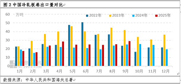 【导语】2025年9月中国冷轧板卷进口环比增加,出口同环比均增加,净出口累计较去年增加,目前为止冷轧板卷外需表现对市场有一定利多支撑。