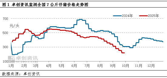 三季度仔猪价格经历“腰斩式”下跌,据卓创资讯统计7公斤仔猪均价从7月初的431.67元/头跌至9月末的220.17元/头,跌幅超48%,且跌破行业280元/头的平均成本线。三季度仔猪市场的 “滑铁卢”,本质是供需两端失衡的集中爆发,但随着养殖端补栏情绪有所好转,卓创资讯预计第四季度仔猪价格或呈现止跌反弹走势。
