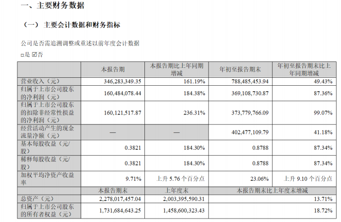 10月27日,四川黄金(001337.SZ)发布公告,第三季度净利润1.6亿元,同比增长184.38%;前三季度净利润3.7亿元,同比增长87.36%。