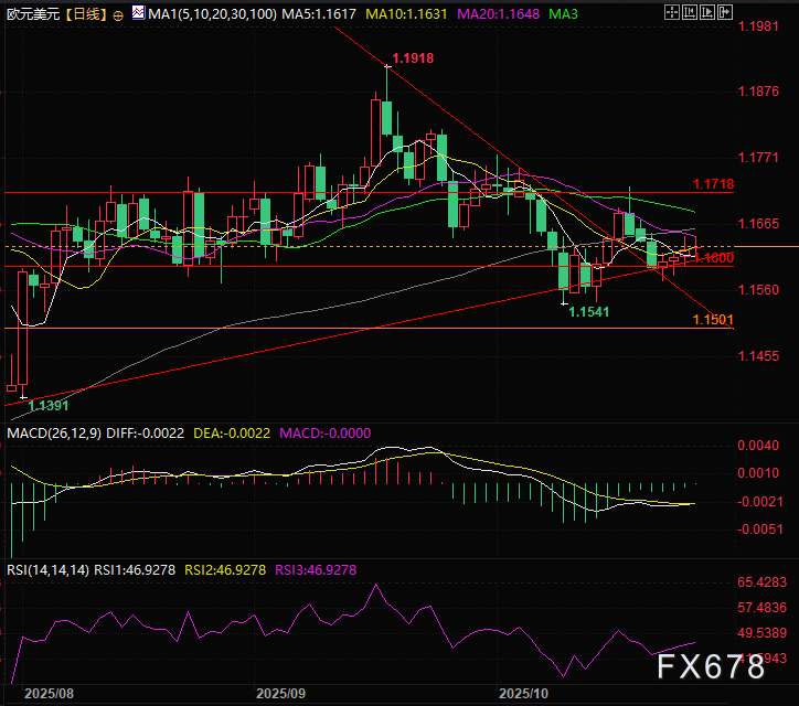政策面与数据面需双线关注:市场普遍预期欧洲央行周四将维持利率不变,而美联储因劳动力市场放缓可能启动降息周期,政策分化预期或重构汇价逻辑;本周欧元区三季度GDP及10月通胀数据,将为欧央行政策路径提供关键指引。