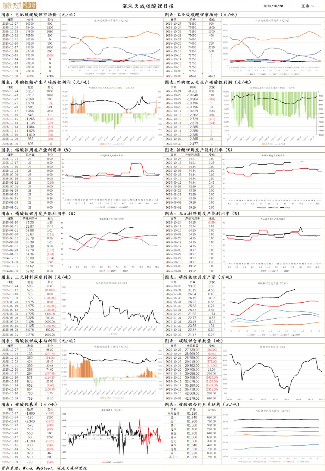 昨日碳酸锂主力合约收盘价81900元/吨,涨跌幅2.53%。主力合约持仓+52304至483478手,仓单-960至27739吨。现货方面,电池级碳酸锂报价+900至80300元/吨,工业级碳酸锂报价+900至78850元/吨。锂精矿均价+28至908美元/吨。