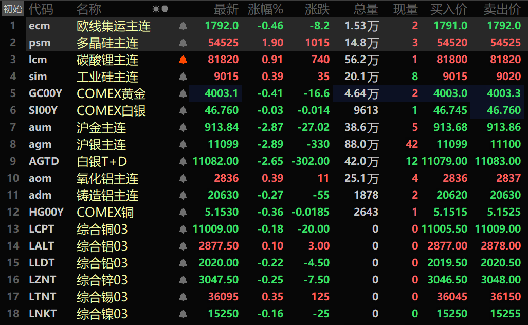 美元走软基本金属普跌沪镍跌近1%工业硅涨近2%沪金跌近3%【SMM午评】