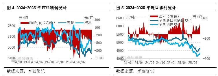 9月份外盘表现偏强,冷冻货价格持续攀升,国内外丙烷市场表现均偏强。但丙烯市场表现平平,供应增加而下游利润空间不足等多重影响下,丙烯价格整体呈现高位回落态势,PDH企业利润受到挤压,装置盈利能力不断恶化。同样由于9月现货商谈贴水升高,加之月内国际现货维持偏强走势,进口到岸综合成本预估平均水平在4450元/吨,较8月上涨230元/吨左右。但进口到港量维持在相对高位,且终端需求恢复不及预期,市场整体涨幅受到制约。因此,9月国内进口市场价格涨幅略不及国际市场,导致进口套利空间较8月收窄,部分时段甚至出现关闭。套利情况表现一般,限制下游接货热情。