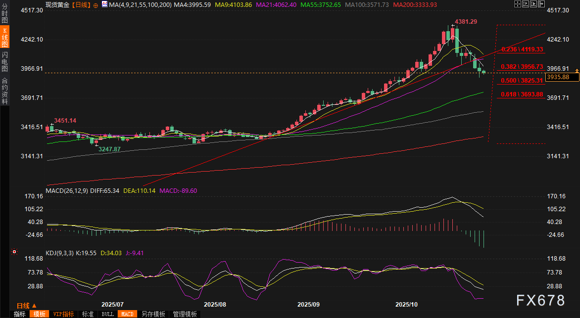 汇通财经APP讯——周三(10月29日)亚市早盘,现货黄金在近三周低位附近徘徊,目前交投于3940美元/盎司附近。周二现货黄金盘中一度触及3886.51美元的低点,这是自10月6日以来的最低水平,收盘下跌0.7%,收报每盎司3952.54美元。中美贸易乐观情绪如潮水般涌来,削弱了黄金作为传统避险资产的吸引力。投资者们原本将黄金视为不确定时期的“护城河”,但如今,这条河似乎正在干涸。