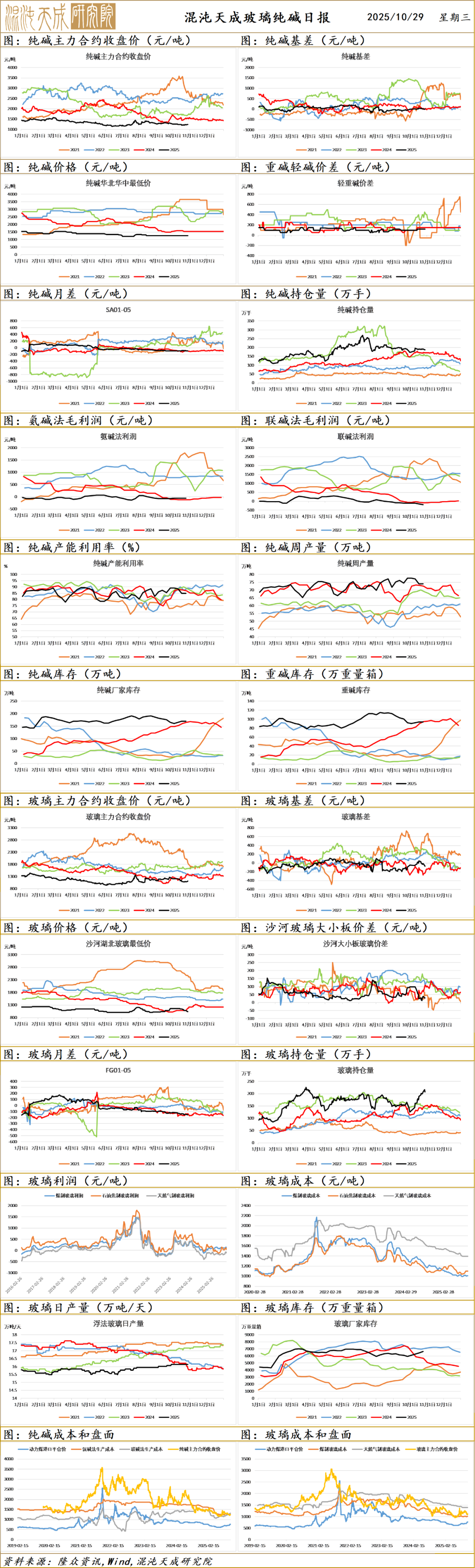 玻璃:今日浮法玻璃现货价格1167,环比上一交易日持平。华北市场大部分稳定,个别价格松动,部分中下游低价补货为主,业者采购心态仍偏谨慎。东北市场个别企业价格下调,整体上出货情况一般。华东市场盘整操作,需求跟进偏弱,企业出货价格相对灵活,贸易商操作亦谨慎,供需矛盾难缓解下,多数对后市心态多偏空,现货观望气氛浓。华中市场今日多数企业价格暂稳,观望情绪较浓。广东区域浮法玻璃价格跌后目前暂稳运行,目前市场优质加工级大板主流商谈1190-1240均有,本地小板主流1140-1160,昨日产销80%-100%之间。西南跌后今日价格暂稳运行,目前云南主流1100-1120,贵州本地1120-1160不等,成都1120-1160,场内低价略有听闻,本地超白价格1640,整体成交仍旧一般。西北区域浮法玻璃价格暂稳,目前当地品牌本地市区出厂集中在1200-1240,送到西安及兰州价集中在1330。