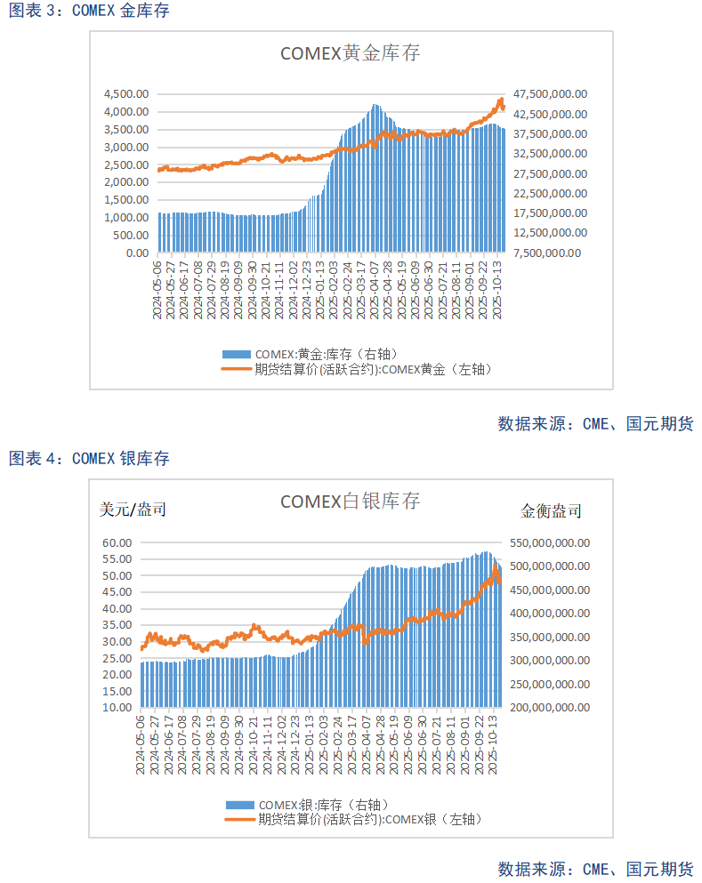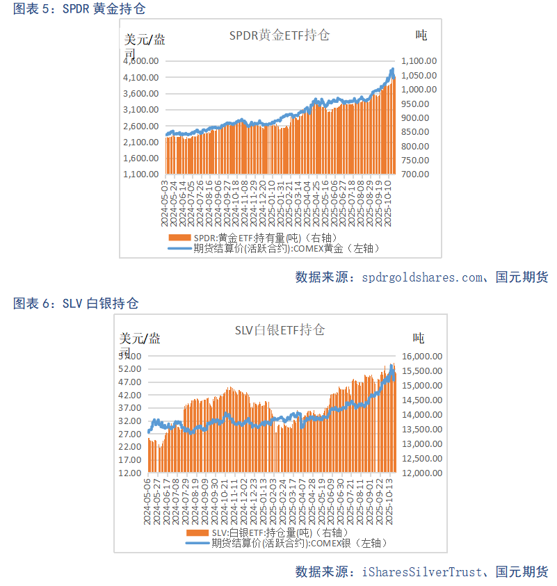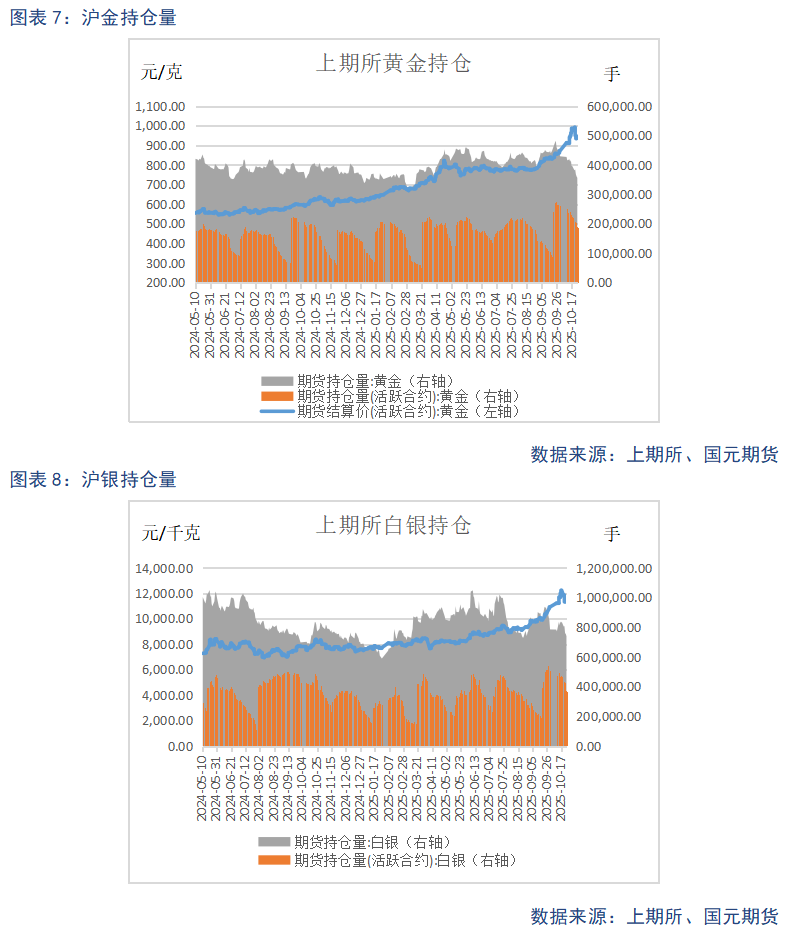 截至10月24日当周,沪金主力期货持仓量为185813手,较上周减少36379手;沪银主力期货持仓量为365976手,较上周减少105186手。