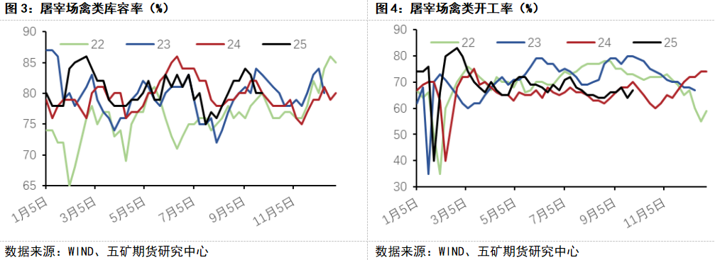 另一方面是消费的支撑程度不够。当下经济环境较为内卷,各行各业普遍面临供应偏大而需求不足的问题,鸡蛋替代物价格均较便宜,这导致往年价格跌至低位后通常会出现的抄底和囤货行为在今年几乎消失。另外,偏弱消费还导致猪肉、鸡肉等冻品库存居高不下,屠宰场开机意愿不足,老鸡想淘无门,进一步增加了供应并削弱了需求。因此,今年对蛋价的判断不应仅局限在行业内,更应放在大的环境框架下来思考。