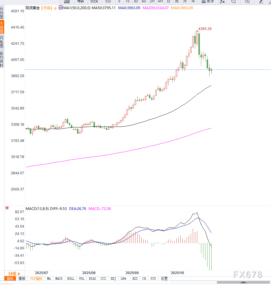 当前技术指标显示动能略偏空,MACD仍处于负值区域,但若金价稳守3900美元上方,短线反弹势头有望延续。