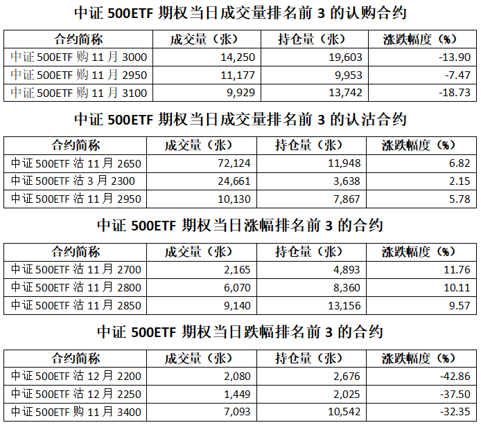 中证500ETF期权总成交面额72.33亿元,增加8.69%,期现成交比为0.02,权利金成交额0.90亿元;期权总成交量260,533张,增加12.59%,其中认购期权成交量82,937张,认沽期权成交量177,596张,认沽认购成交比率为2.14(上一交易日认沽认购成交比率为0.92)。