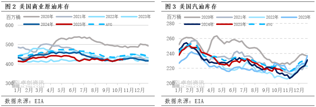 从本轮美国升级对华关税风险来看,自9月底美国发布出口管制穿透性规则、10月对中国船舶征收港口费、将多家中国实体列入出口管制“实体清单”;中国也以稀土出口管制、对美船舶征收港口费等方式反制,到特朗普高关税威胁,实质上更多在于中美重要谈判节点到来前,美方增加“筹码”的举措。一方面,中美快速脱钩难以实现,而美国经济、政治压力及美元信用体系风险也掣肘美国关税行为;另一方面,4月“对等关税”的经验记忆使得市场仍有“TACO”交易预期。由此,市场风险情绪消化后,风险资产反弹回升,但原油受过剩担忧压制,修复有限。10月下旬,中美在马来西亚吉隆坡举行经贸磋商,贸易风险缓和预期对油价形成支撑。