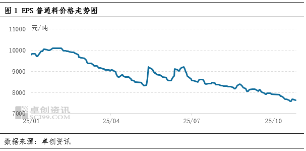国庆假期后,在成本重心下移、供需结构偏弱等因素扰动下,EPS市场延续疲弱态势,虽然期间有阶段性修复探涨,但持续性有限,价格整体呈现震荡下行趋势。短线供需存在持续转弱预期,叠加成本涨势助力暂不足等拖曳力,EPS市场或暂难摆脱颓势。