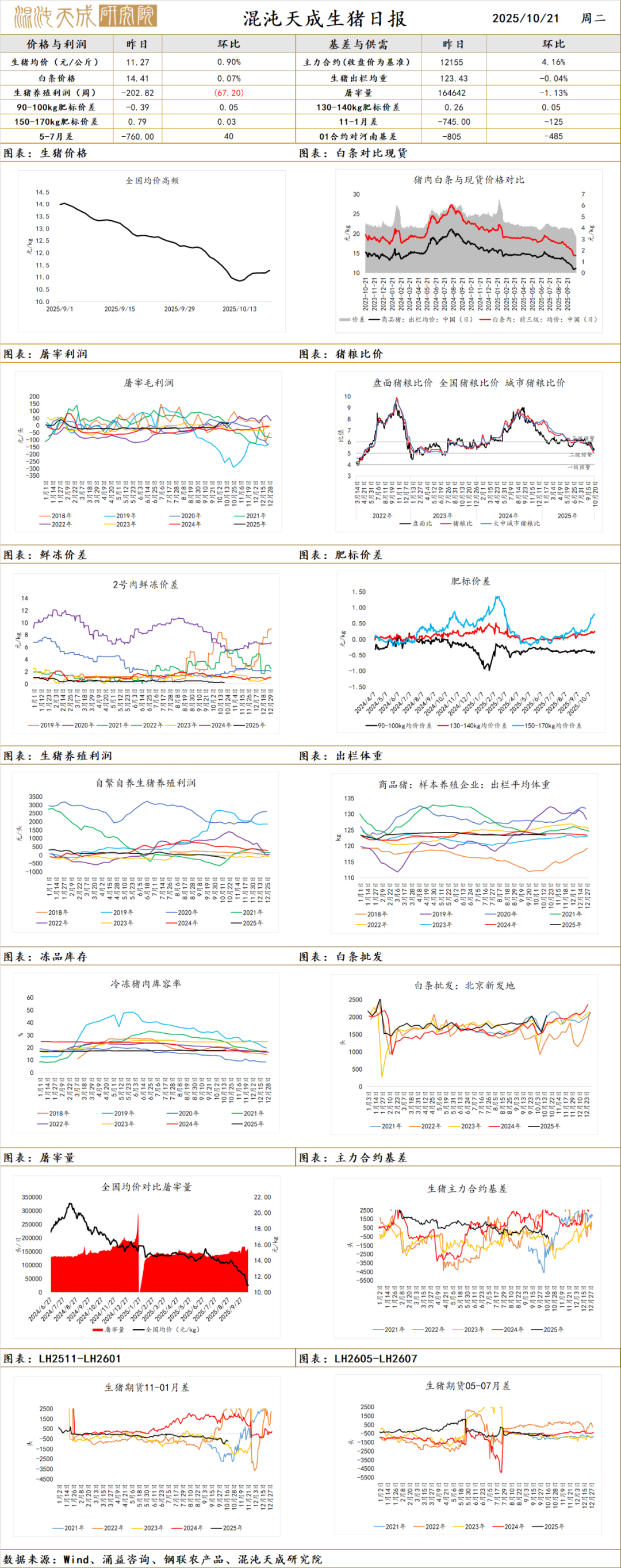 3.机构消息:据上海钢联重点养殖企业样本数据显示,2025年10月21日重点养殖企业全国生猪日度出栏量为326524头,较昨日上涨4.43%。短期而言,情绪支撑预计价格还有偏强预期但大格局尚未改变,大幅提升的可能性不大。(钢联农产品)