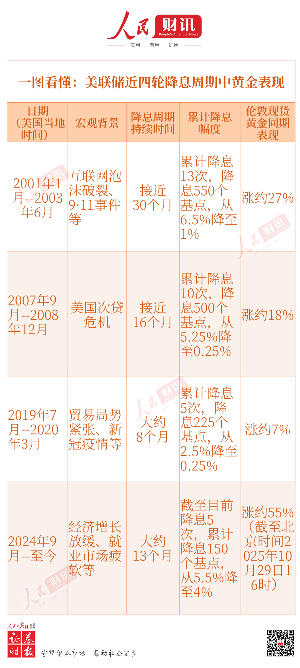 一图看懂:美联储近四轮降息周期中黄金表现