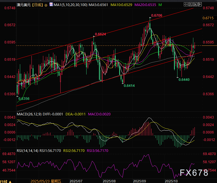 汇通财经APP讯——周四(10月30日)亚欧时段澳元兑美元收复部分昨日失地,交投于0.6590附近涨0.11%。受到美联储鹰派降息言论影响,周四纽约时段尾盘美元快速走强带领澳元跳水,在中美最高领导人于韩国举行备受期待的会晤后,澳元兑美元反弹。鉴于中澳两国紧密的贸易联系,中国经济状况的任何变动都可能对澳元产生影响。