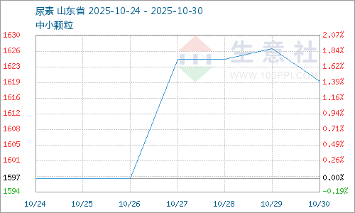 据生意社商品行情分析系统,截止10月30日,国内尿素市场参考均价为1620元/吨,较10月24日市场参考均价1597元/吨,本周国内尿素市场价格上涨幅度为1.41%。