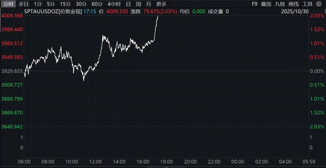 国际金价突然直线拉升,现货黄金站上4000美元关口。现货黄金盘中涨超2%,报4009.33美元/盎司;现货白银涨逾1.5%。