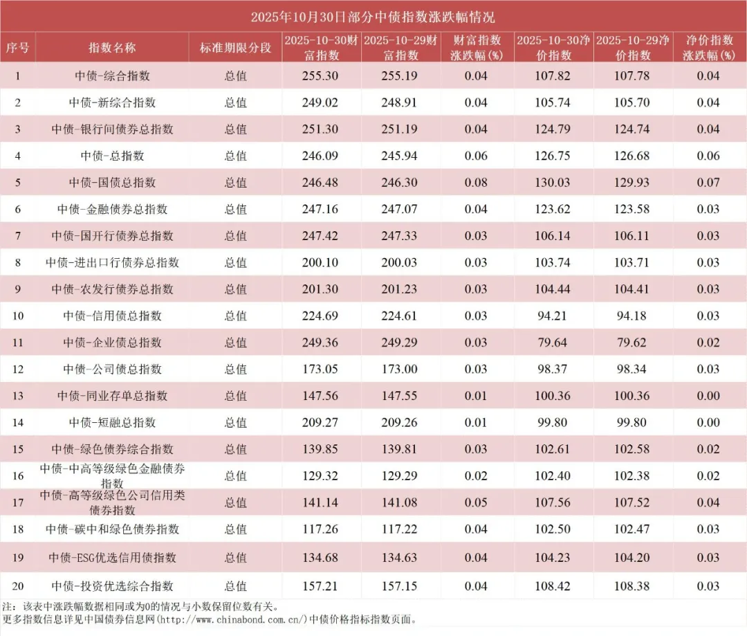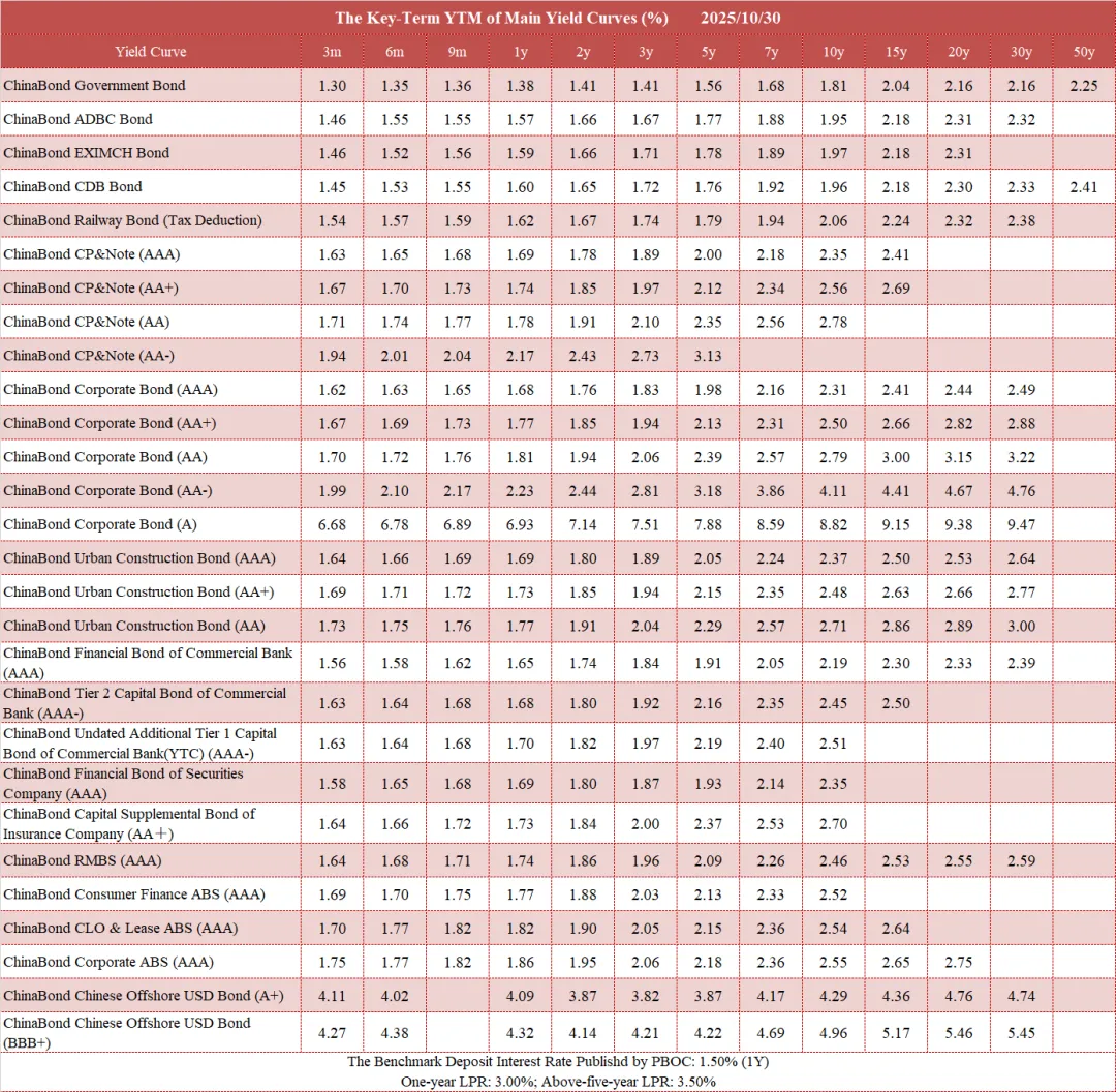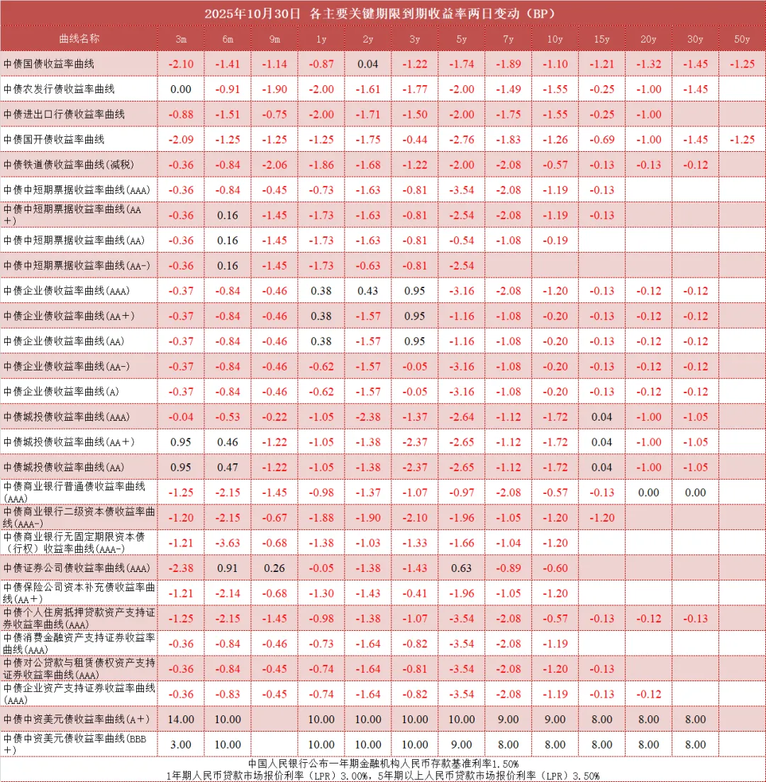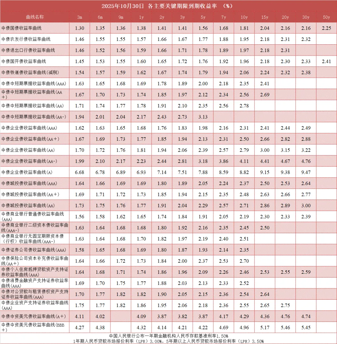 债市值言:中债收益率曲线和指数日评2025年10月30日