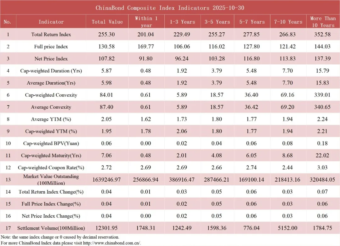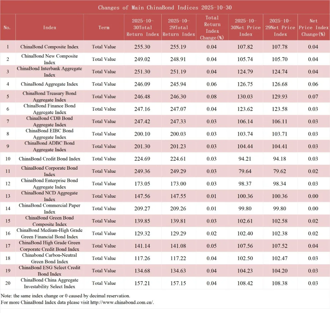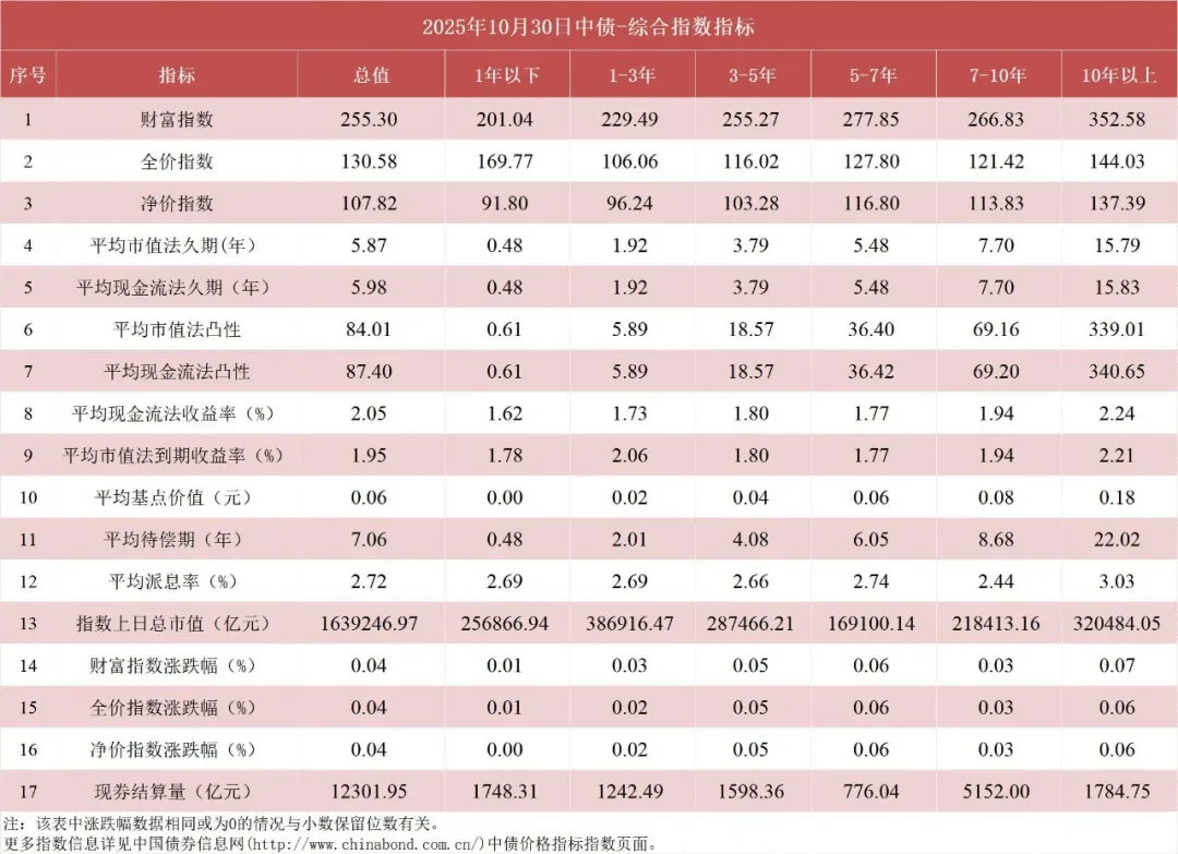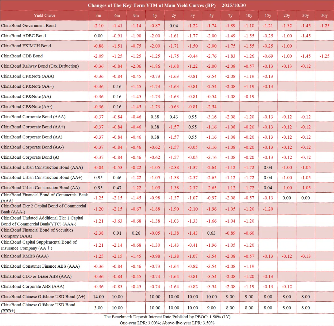 债市值言:中债收益率曲线和指数日评2025年10月30日