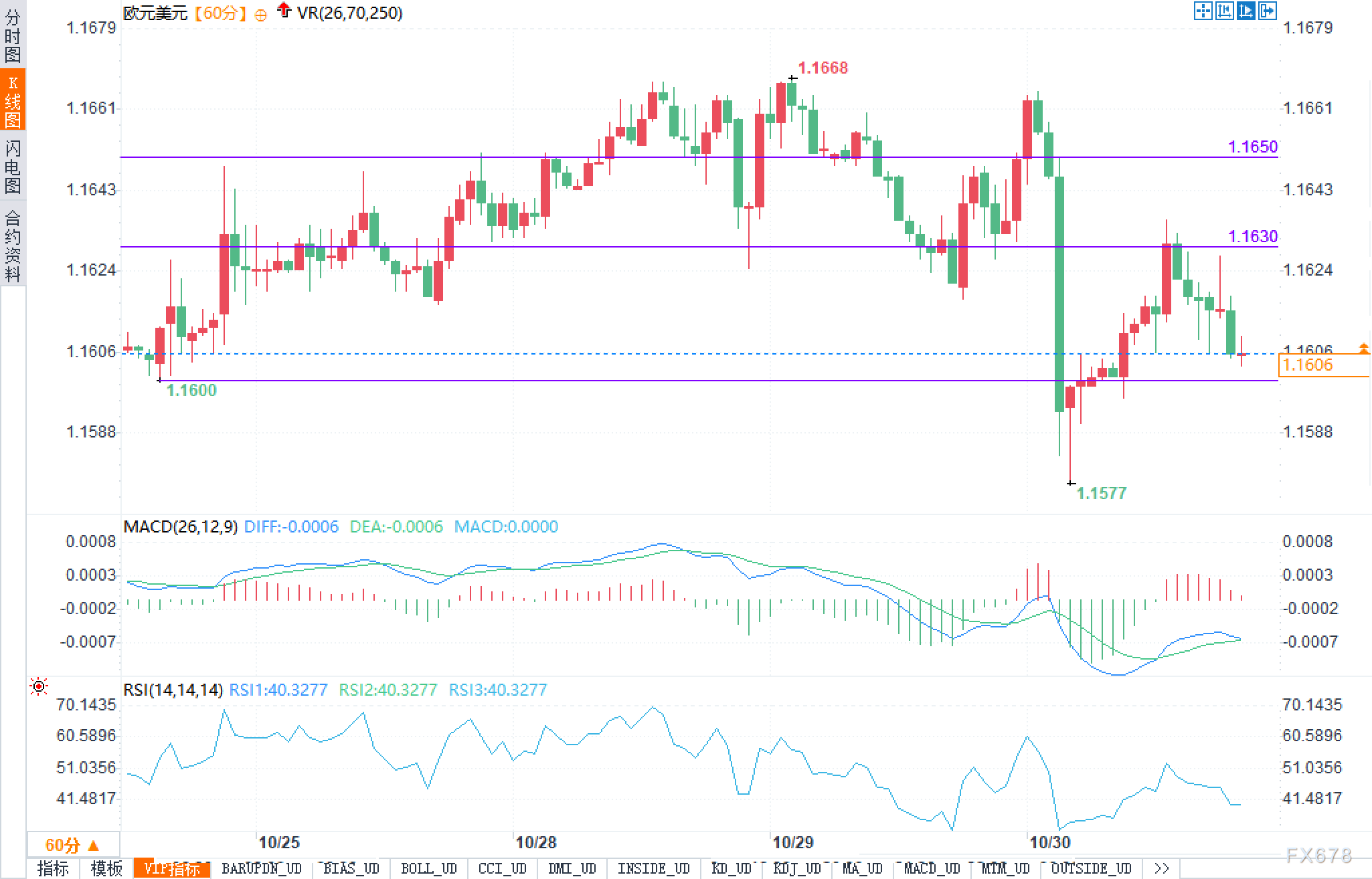 汇通财经APP讯——10月30日,星期四。欧元兑美元美市盘前交投于1.1600附近,市场正处于对欧洲央行货币政策路径的再评估阶段。美联储降息并释放鹰派信号后,美元指数在高位整固,而欧元则在等待欧洲央行今日政策会议(21:15)的明确指引。