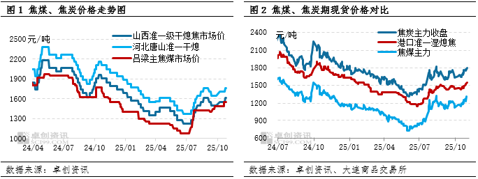 第一,国庆节期间煤矿停产放假,节后查超产等影响煤矿放量,焦煤坑口价格偏强运行。国庆节期间部分煤矿停产放假,节假日前后下游采购积极,坑口焦煤销售良好,库存维持低位;另外22个中央安全生产考核巡察组将陆续进驻31个省,宏观消息面刺激,焦煤供应收紧预期偏强,期现货价格偏强上涨运行。截至10月29日山西吕梁S<1主焦煤价格收于1550元/吨,较9月低端价格累计涨150元/吨,而焦炭价格累计涨100-130元/吨,涨幅远不及焦煤,焦化厂成本压力大。