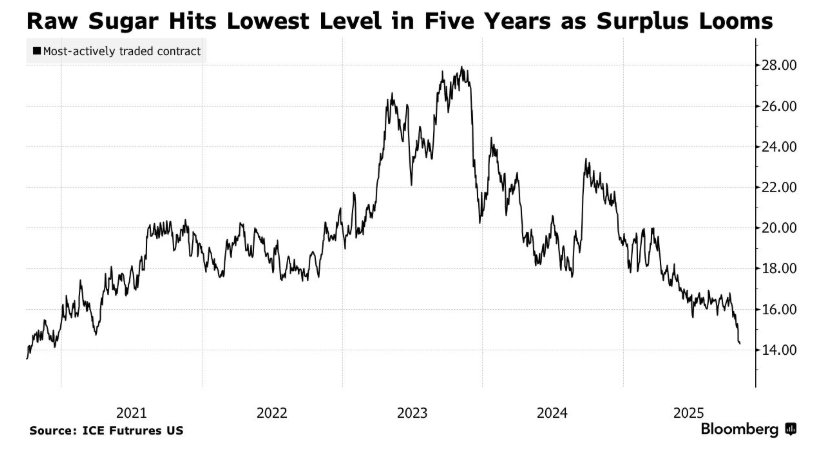 全球过剩预期压顶,糖价“甜不起来”!纽约原糖期货跌至5年来最低