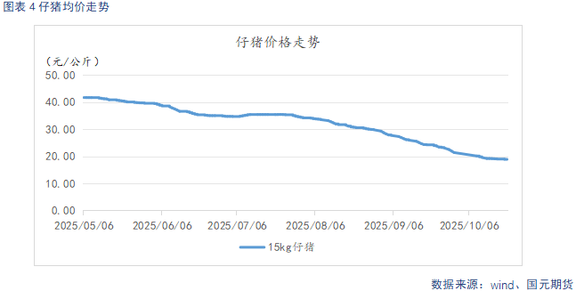 截至10月21日,仔猪出栏均价18.81元/公斤,较上周环比下跌0.24元/公斤。供给过剩情况短期无法根本性扭转,养殖端对后市预期偏悲观,补栏积极性不高,仔猪价格持续走弱。