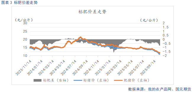 截至10月21日,生猪出栏均价11.4元/公斤,较上周环比上涨0.32元/公斤。标肥价差-0.74元/公斤,较上周环比缩小0.04元/公斤。需求较节后一周有所复苏,加之标肥价差对比节前,呈现走扩趋势,肥猪溢价为压栏、二育提供空间,短期截留了部分猪源,供应压力有所缓解。