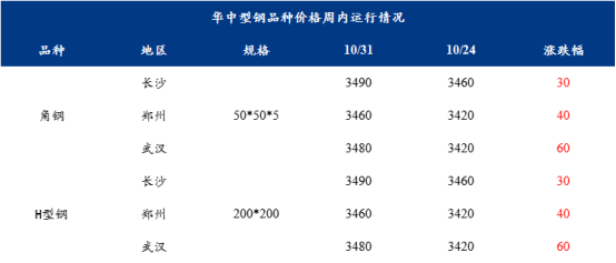 表1:华中型钢品种价格汇总(单位:元/吨)