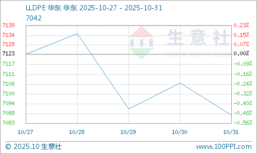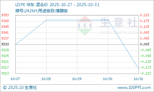 据生意社商品行情分析系统监测,LLDPE(7042)10月27日均价7123元/吨,10月31日均价在7088元/吨,下跌0.49%。LDPE(2426H)10月27日均价9333元/吨,10月31日均价在9316元/吨,下跌0.18%。HDPE(2426H)10月27日均价7650元/吨,10月30日均价在7650元/吨,报价暂稳。