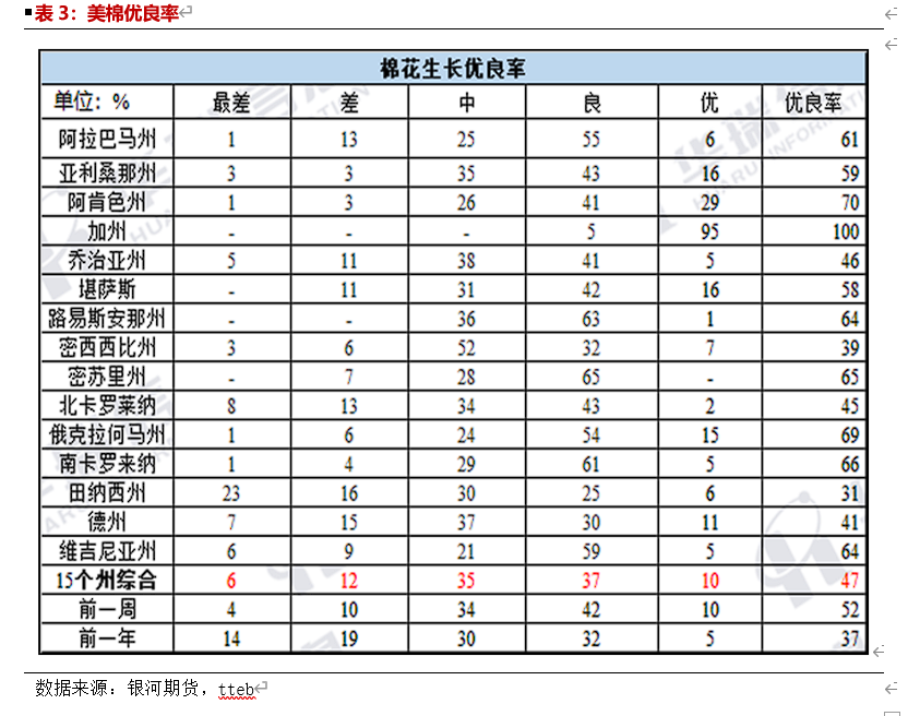 三、美国:新棉美棉优良率表现尚可。美棉新棉签约进度表现较差处于历年同期低位。