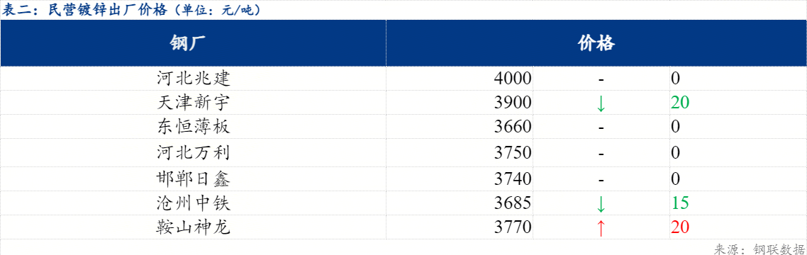 今日北方民营钢厂镀锌出厂指导价在3660-4000元/吨。