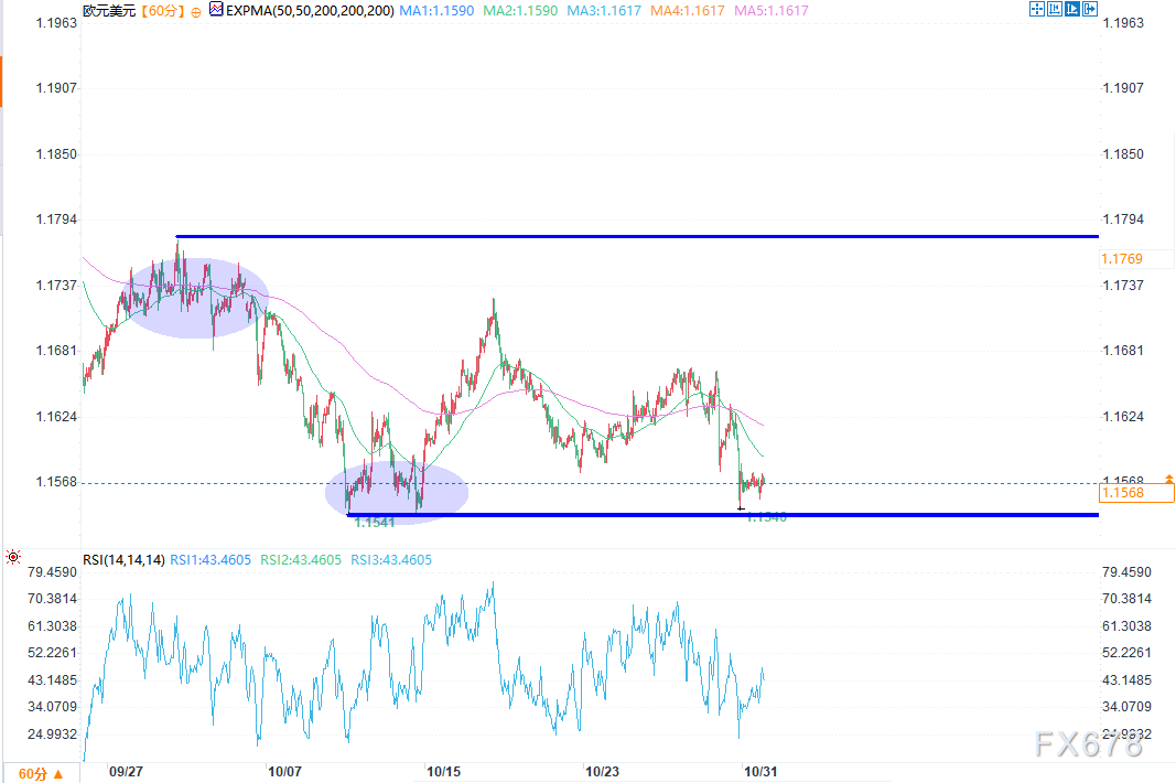 10月欧元/美元交易波动剧烈,且有一点十分明确:该货币对未能维持显著的上涨趋势。目前欧元/美元汇率接近1.16280,暂无明确催化剂推动其突然反弹走高。尽管10月中旬曾出现上涨,但汇率很快回落至较低水平。
