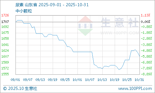 供应面来看,供需结构仍偏向过剩,进入10月,开工率保持中高水平,检修厂家不多,排产量不减。企业库存压力高企,为减轻压力,工厂价格跌多涨少。其次,外部货源冲击,进口量有增无减,国外低价货源冲击国内市场。供应处于过剩局面。中旬以后虽然部分厂家短时故障,排产下降影响下,企业报价略有回升,但月末,随着部分装置恢复运行,上升趋势并未延续,山东部分厂家价格小幅回调,市场仍未摆脱弱势行情。总体来看,月内氨价变动不大,调整空间继续收窄,需求端来看,农需旺季不旺特征明显,下游产品尿素、复合肥等行业支撑不足,工业需求维持刚需,波动不大。下游疲软导致行情难有好转。