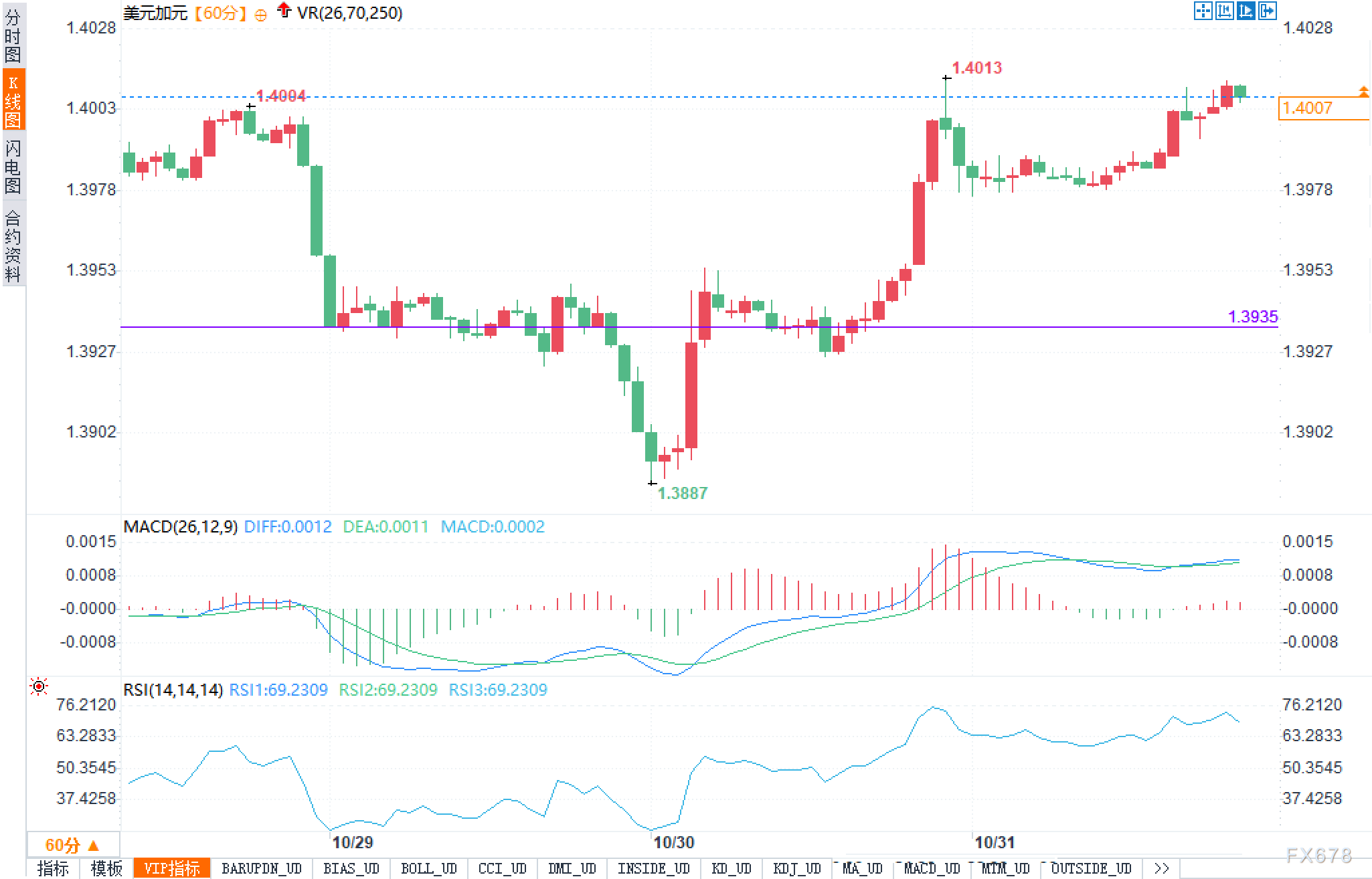 汇通财经APP讯——周五(10月31日)欧洲时段,美元兑加元在1.4000上方交投。汇价本周先跌后涨,周中一度触及1.3887的低位后迅速反弹,现阶段基本回到心理关口1.4000上方,几乎抹平此前回撤。
