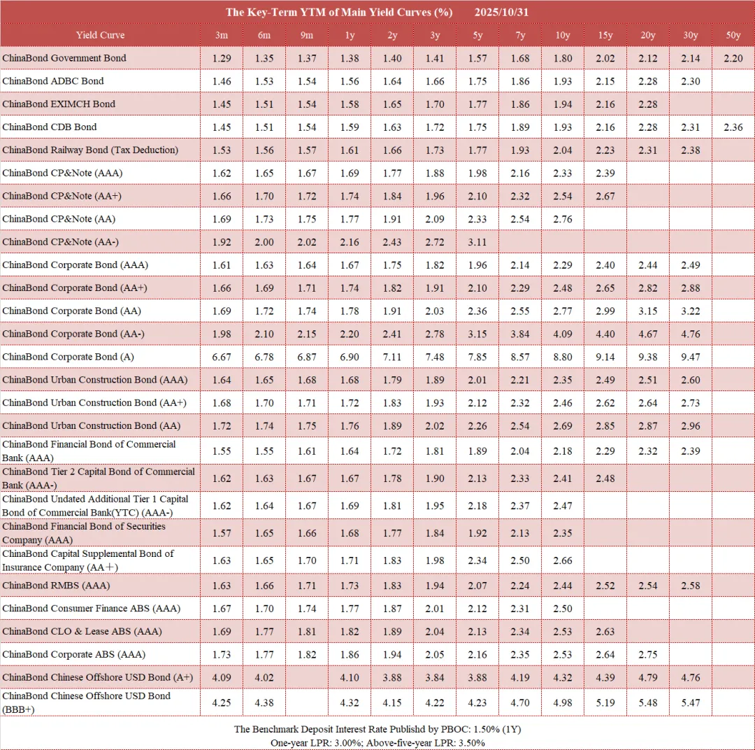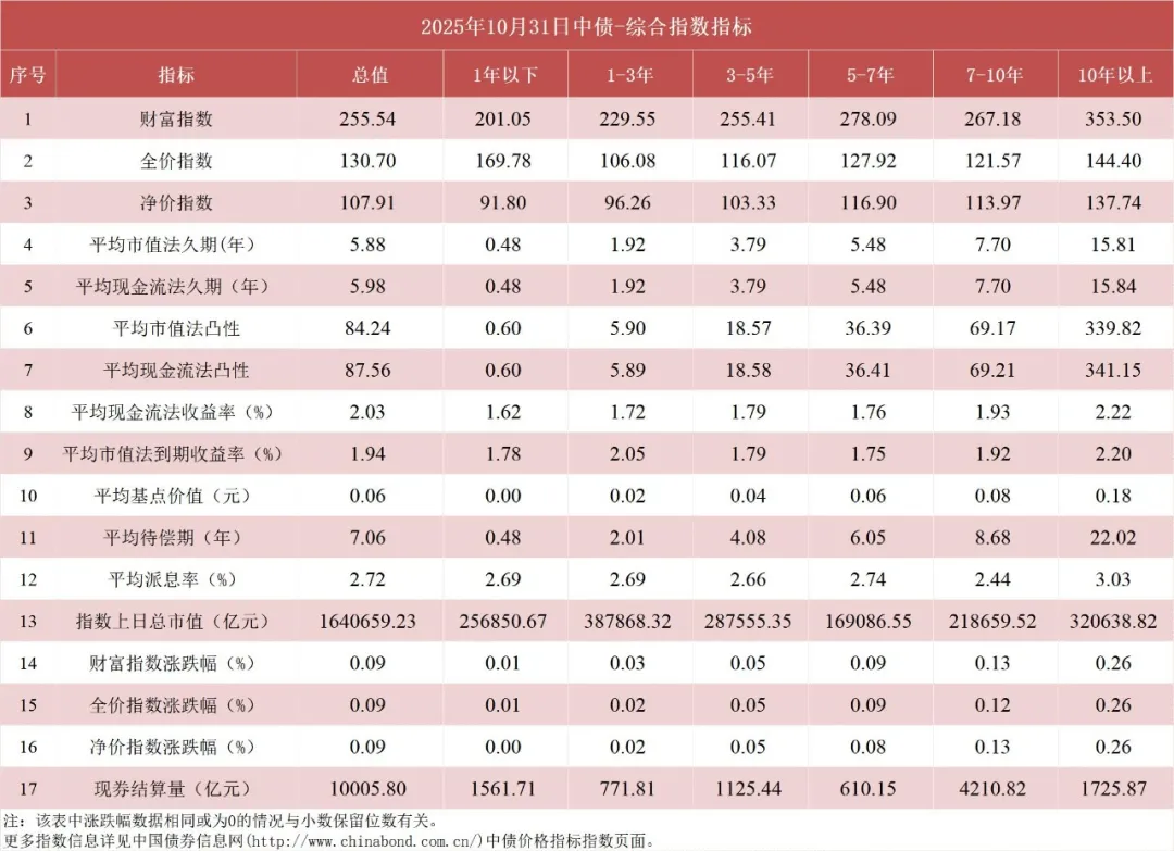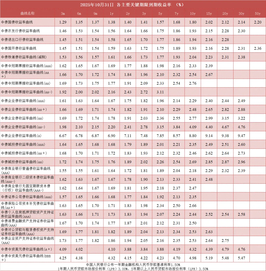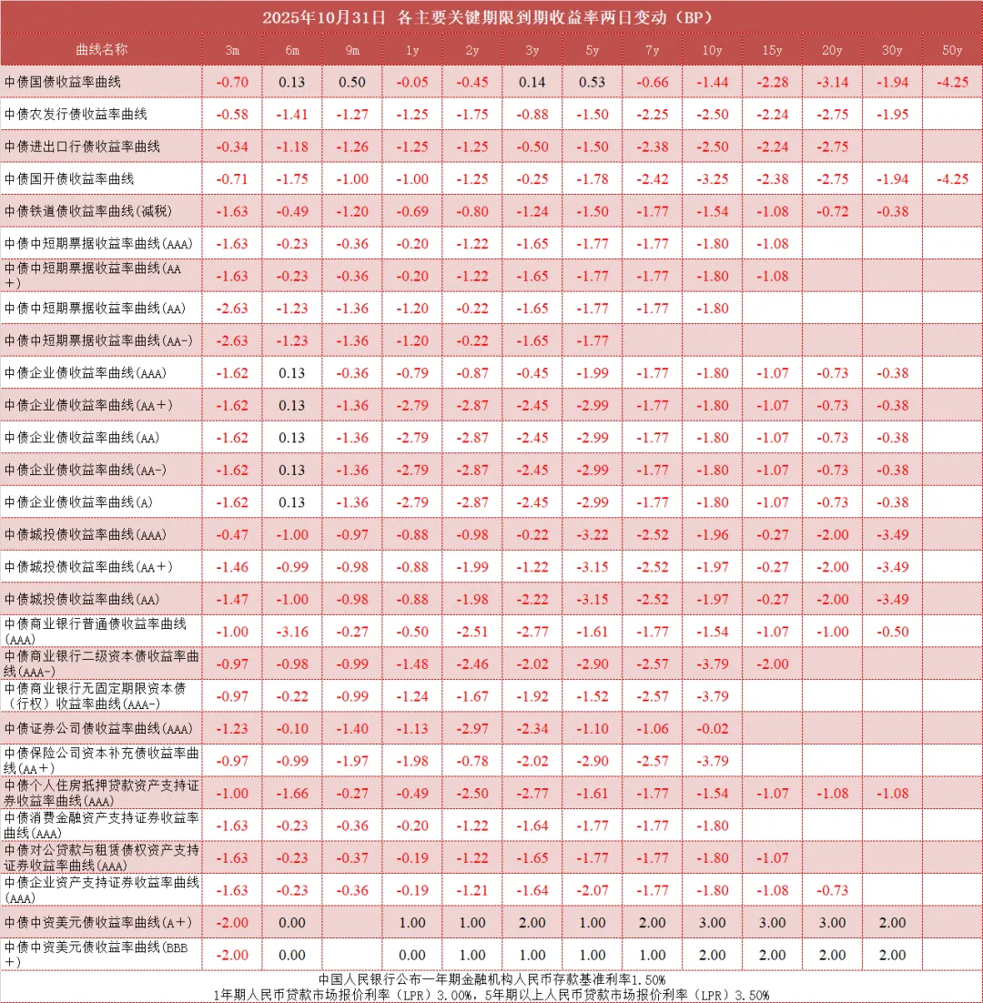 债市值言:中债收益率曲线和指数日评2025年10月31日