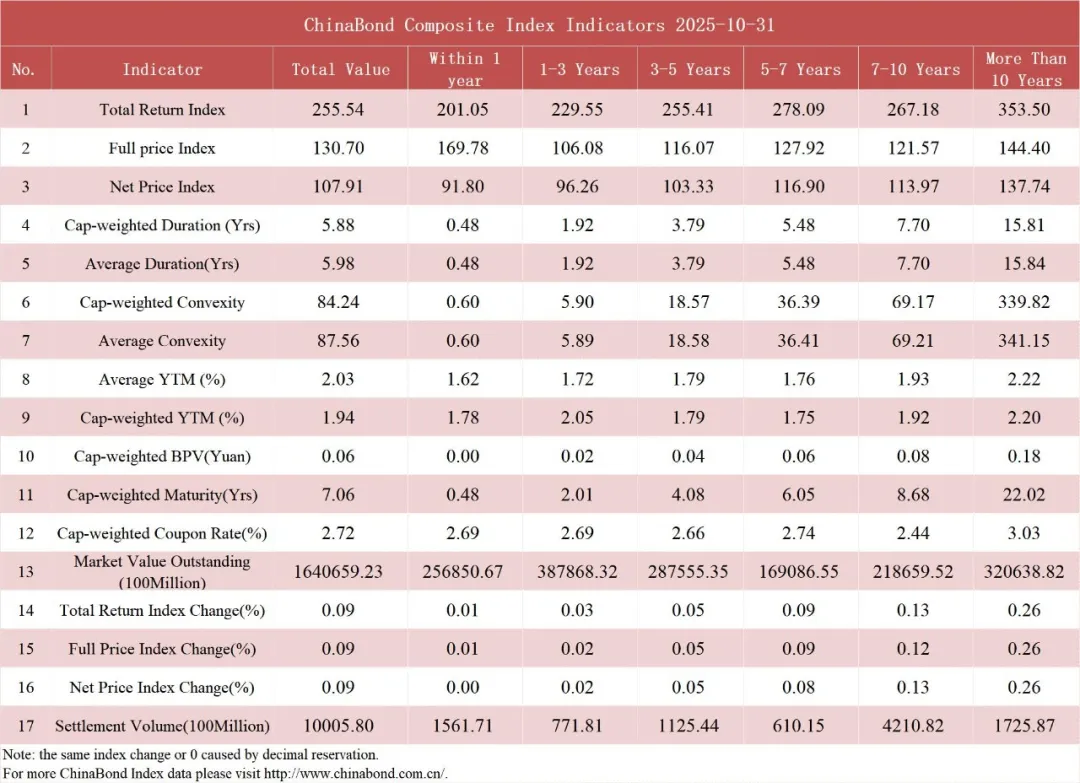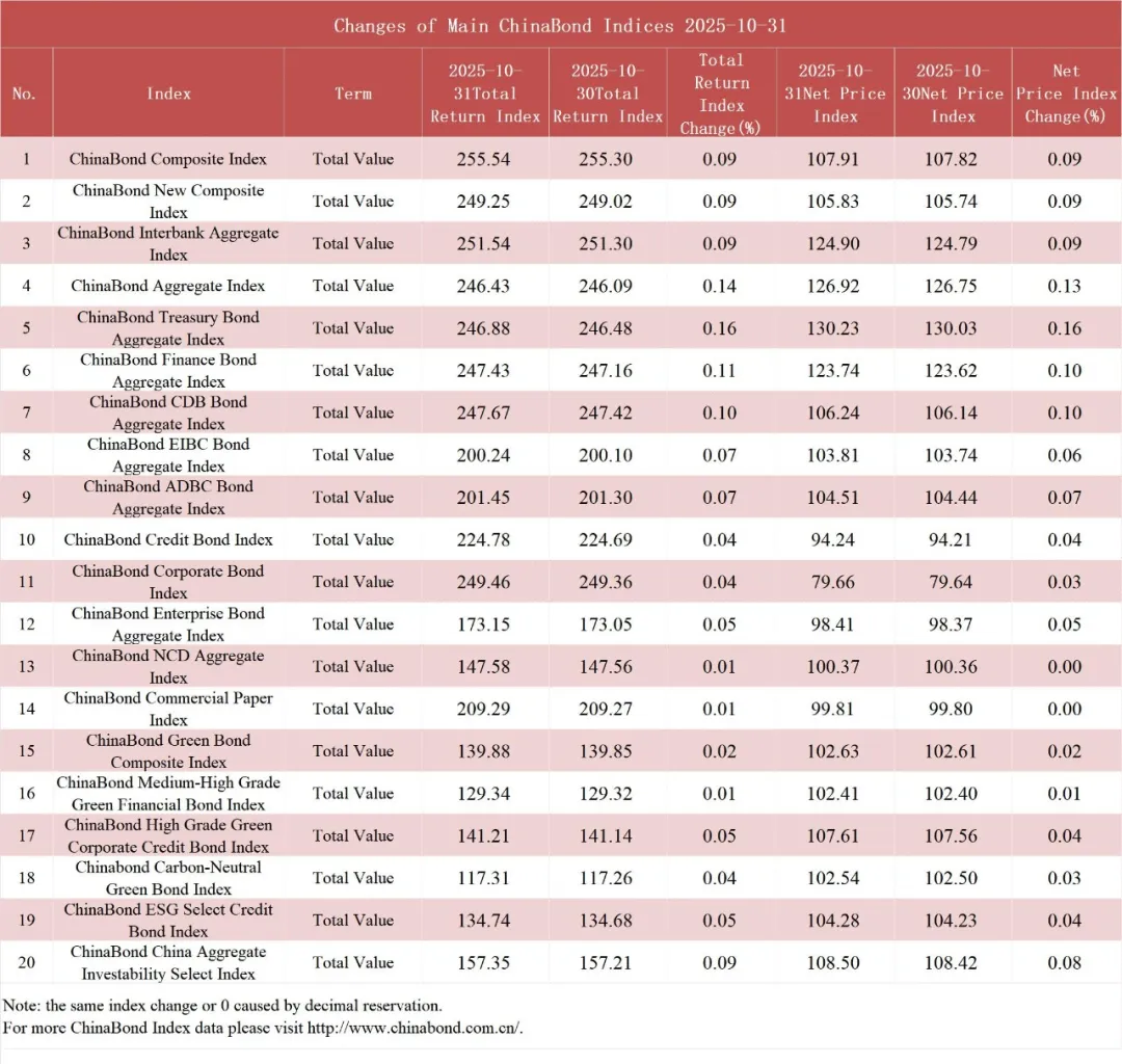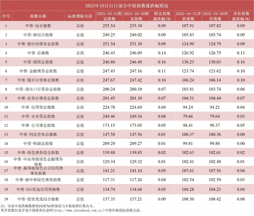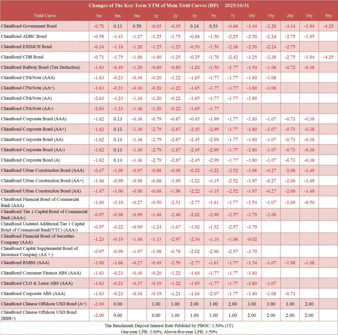 债市值言:中债收益率曲线和指数日评2025年10月31日